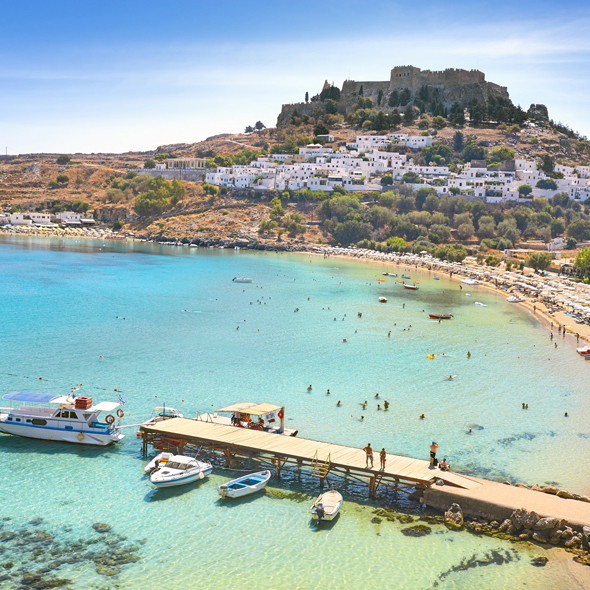 Rhodes, the largest of the Dodecanese Islands, is truly a vacation destination with something for everyone: sunshine, spectacular beaches on the Aegean Sea, a medieval walled city, an ancient acropolis, and much more. In ancient times, the people of Rhodes chose Helios, the Sun, as their divine patron. With an average of three hundred plus days of sunshine a year, it's safe to say that Helios continues to smile upon Rhodes today.