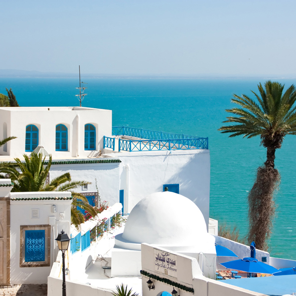 Sidi Bou Said this lovely blue and white village, gaily perched on the cliffs overlooking the Bay of Tunis, is perhaps the most cherished in Tunisia. The legend tells of Saint Louis - coming to wage war he fell in love with a Berber princess and, changing his name became the patron saint of this village where he lived in joy and peace. Visit Sidi Bou Said, fall under its charm and the story will seem most logical.