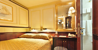 Category 6 staterooms feature double/triple beds, and marble bathroom with shower. Each stateroom also benefits from air conditioning, hair dryers, private safe, television, DVD player, telephone and other amenities an experienced traveler has come to expect.