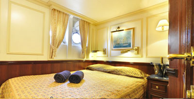 Category 6 staterooms feature double/triple beds, and marble bathroom with shower. Each stateroom also benefits from air conditioning, hair dryers, private safe, television, DVD player, telephone and other amenities an experienced traveller has come to expect.Small double bed or triple berthBathroom with showerAverage cabin dimensions - 10m2